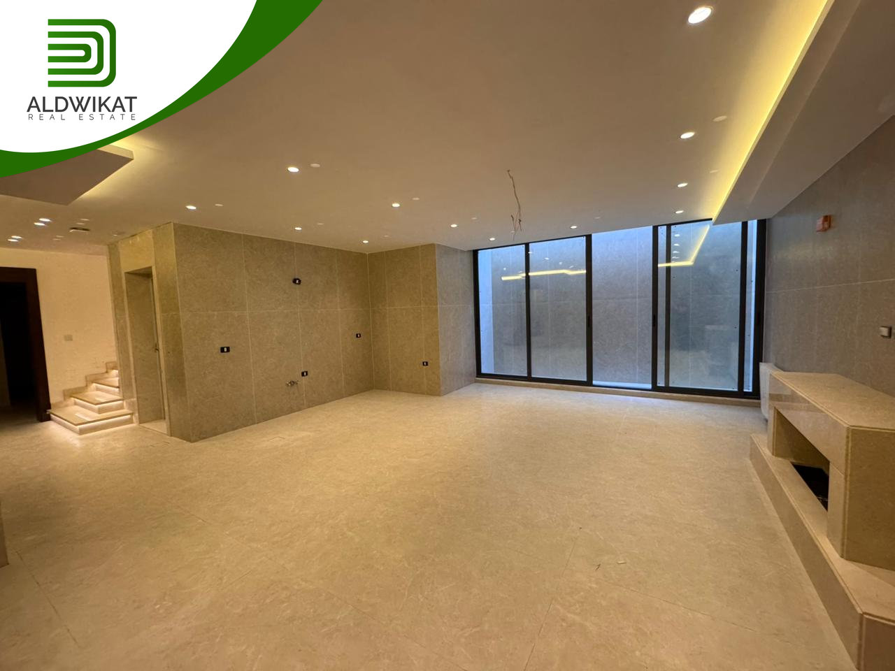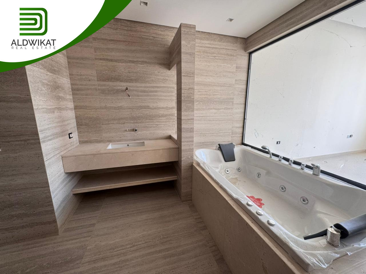 التشطيبات سوبر ديلوكس - نوع الارضيات ارخام + بورسلان - تدفئة غاز تحت البلاط - تكييف مركزي - حديقة - كراج خاص - اطلالة - بئر ماء - مصعد
