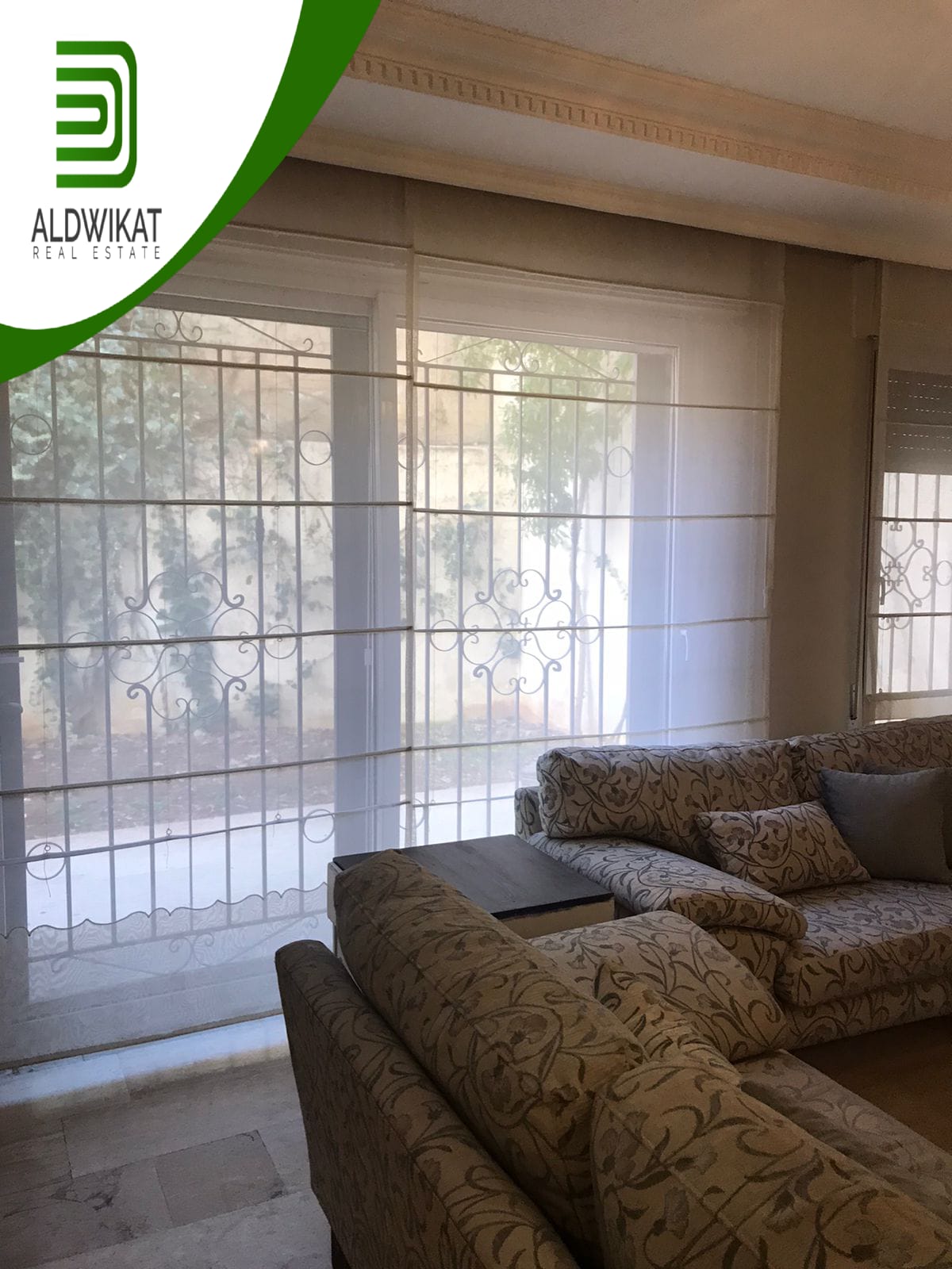 شقة للايجار في الرابية طابق شبه ارضي مساحة البناء 203م ومساحة الترس 120م