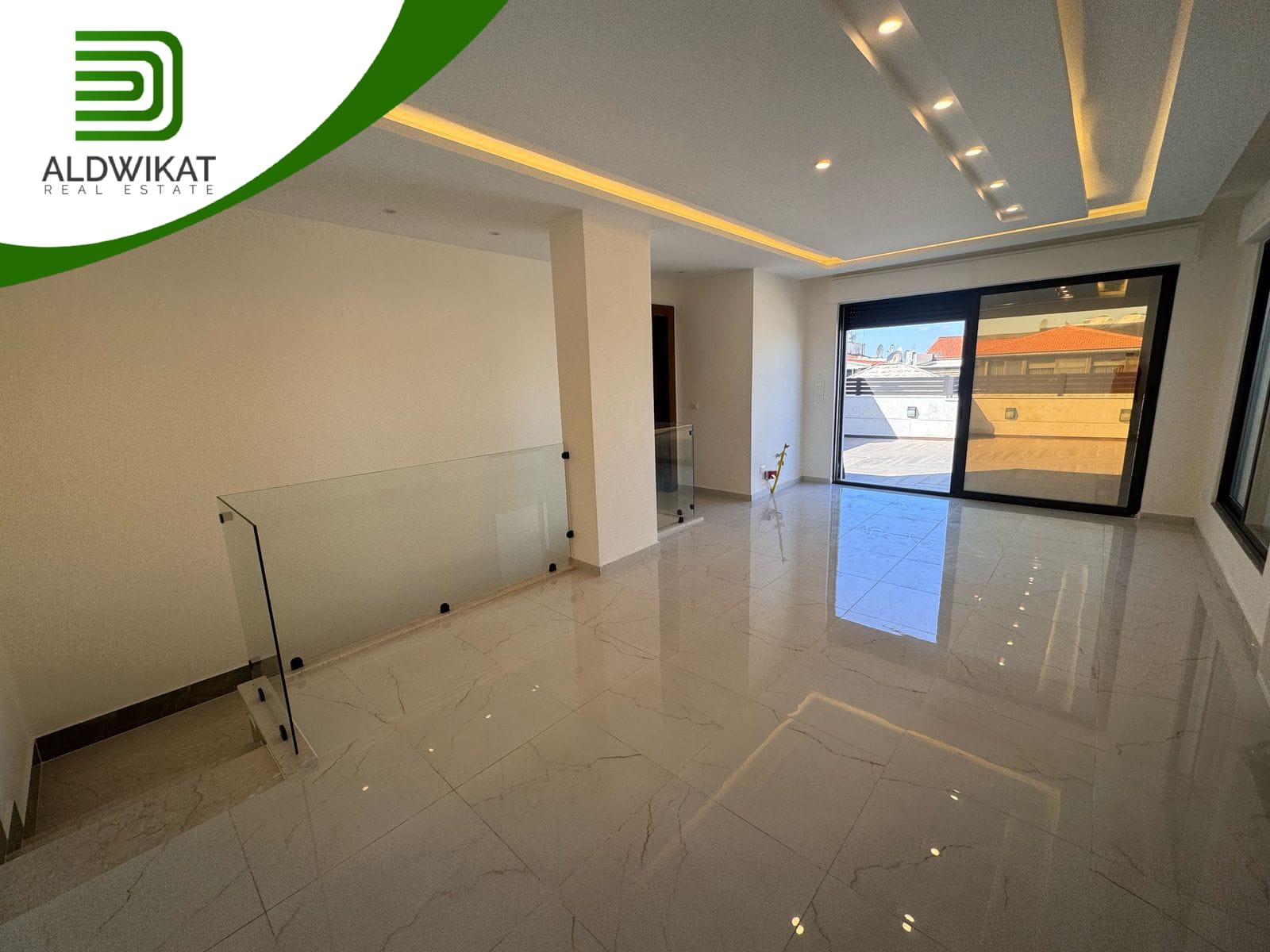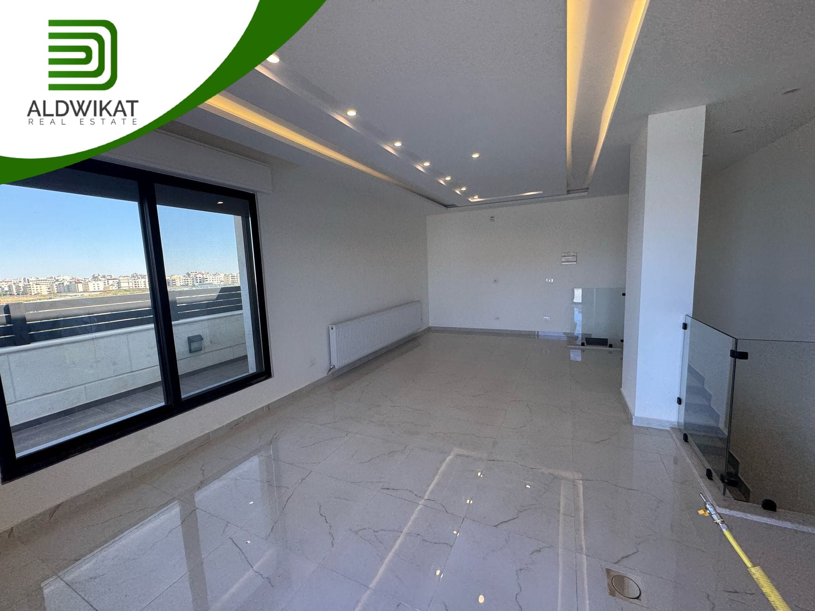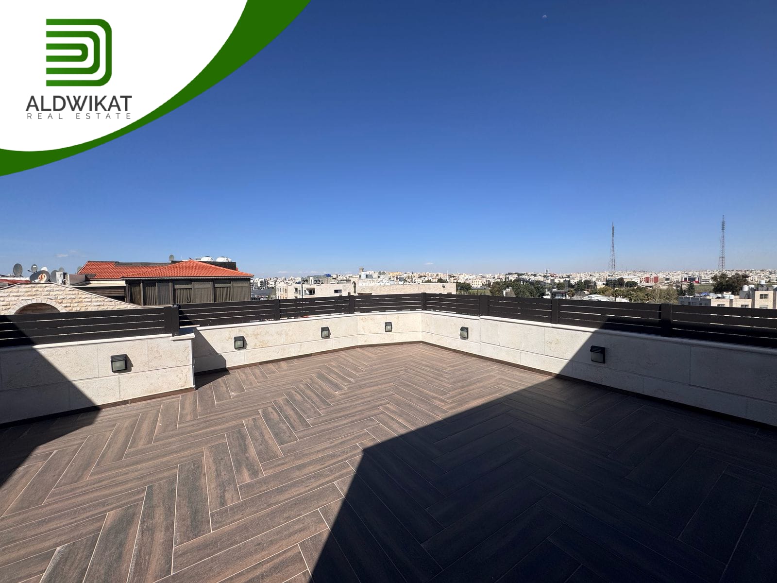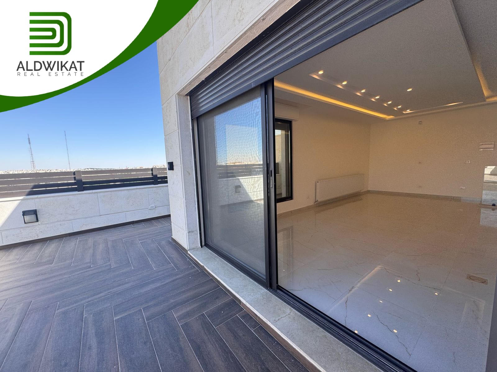 شقة طابق ثالث مع روف للبيع في رجم عميش مساحة 280م داخلي والترس 90م منطقة هادئة ومطلة