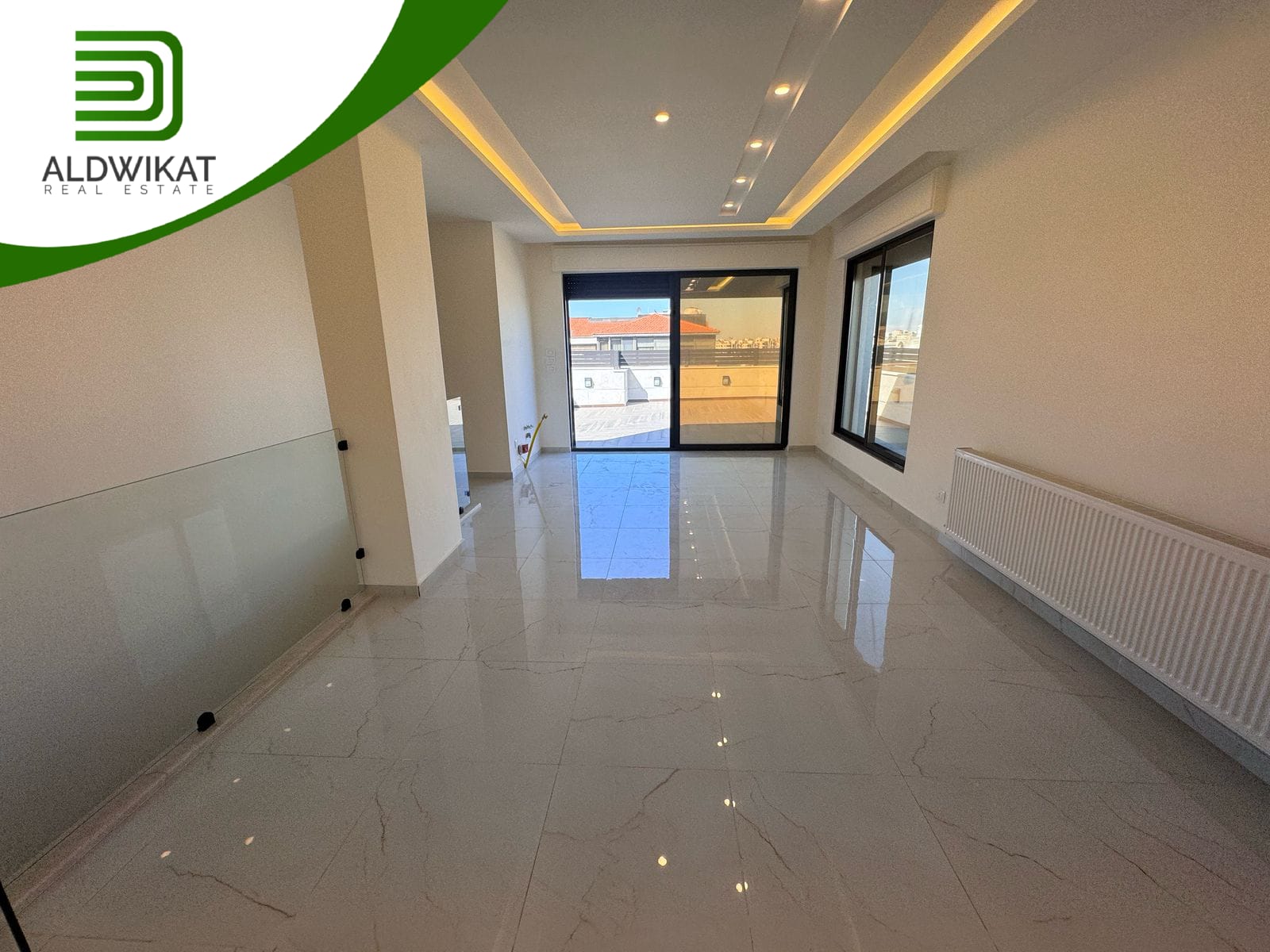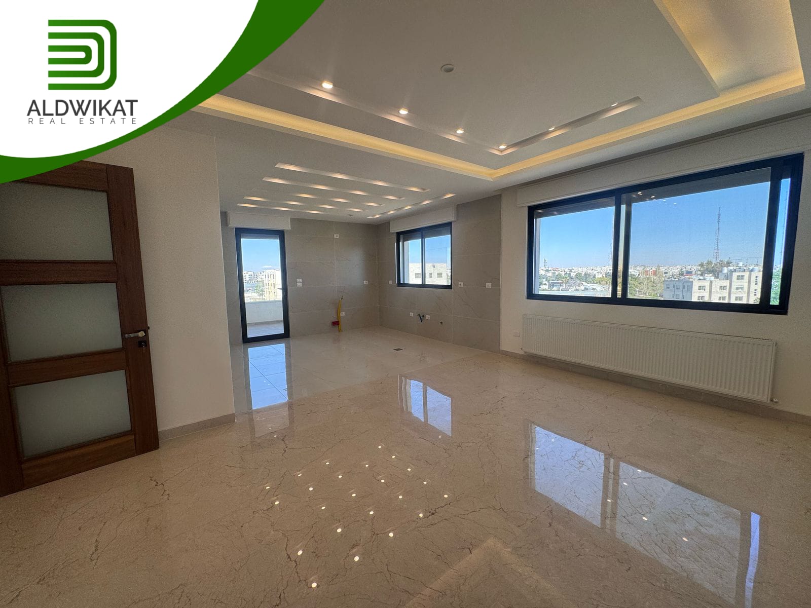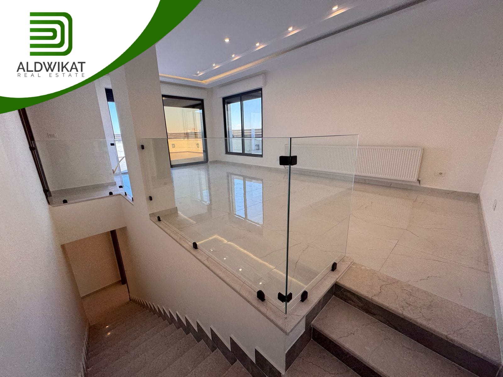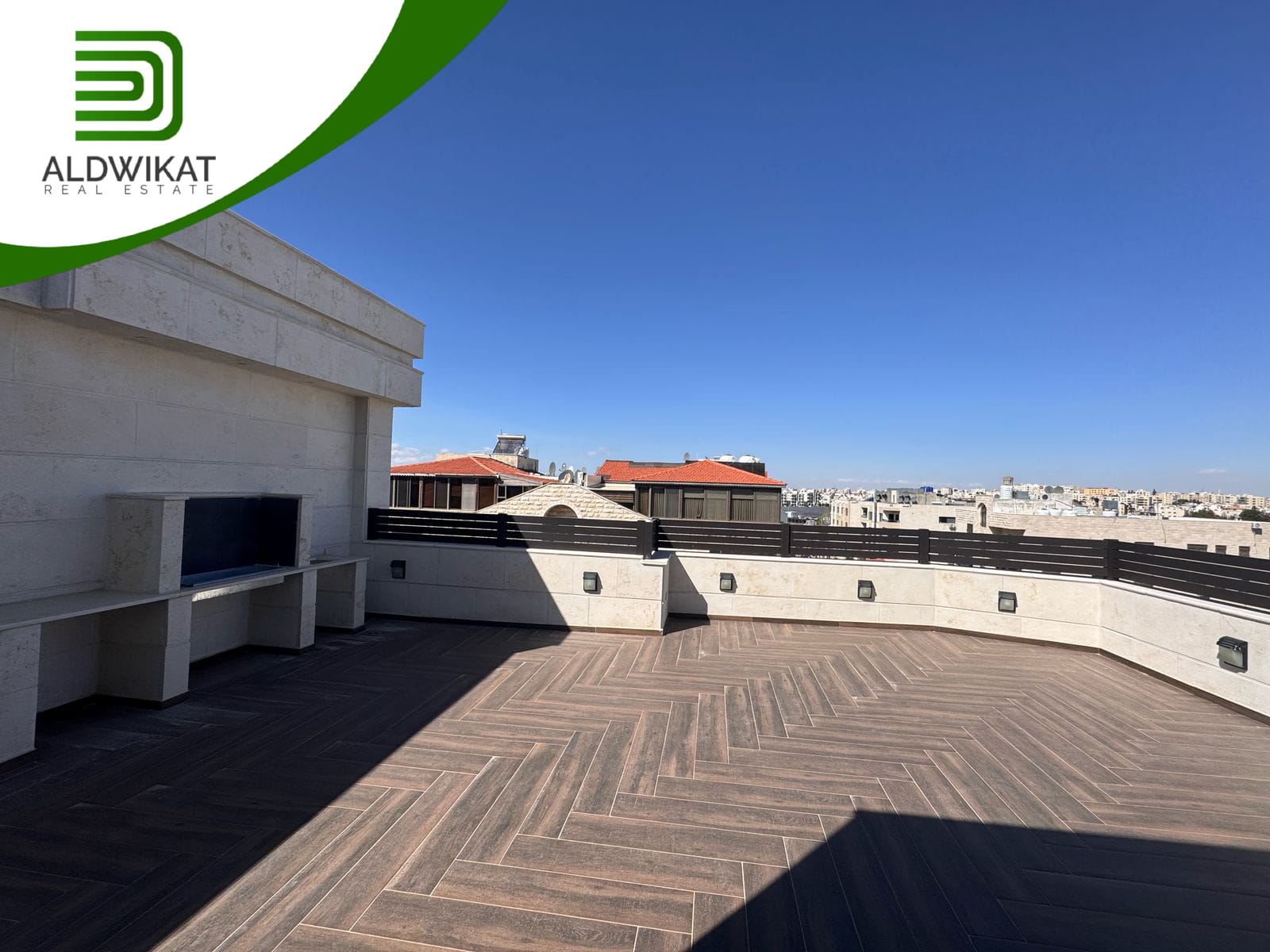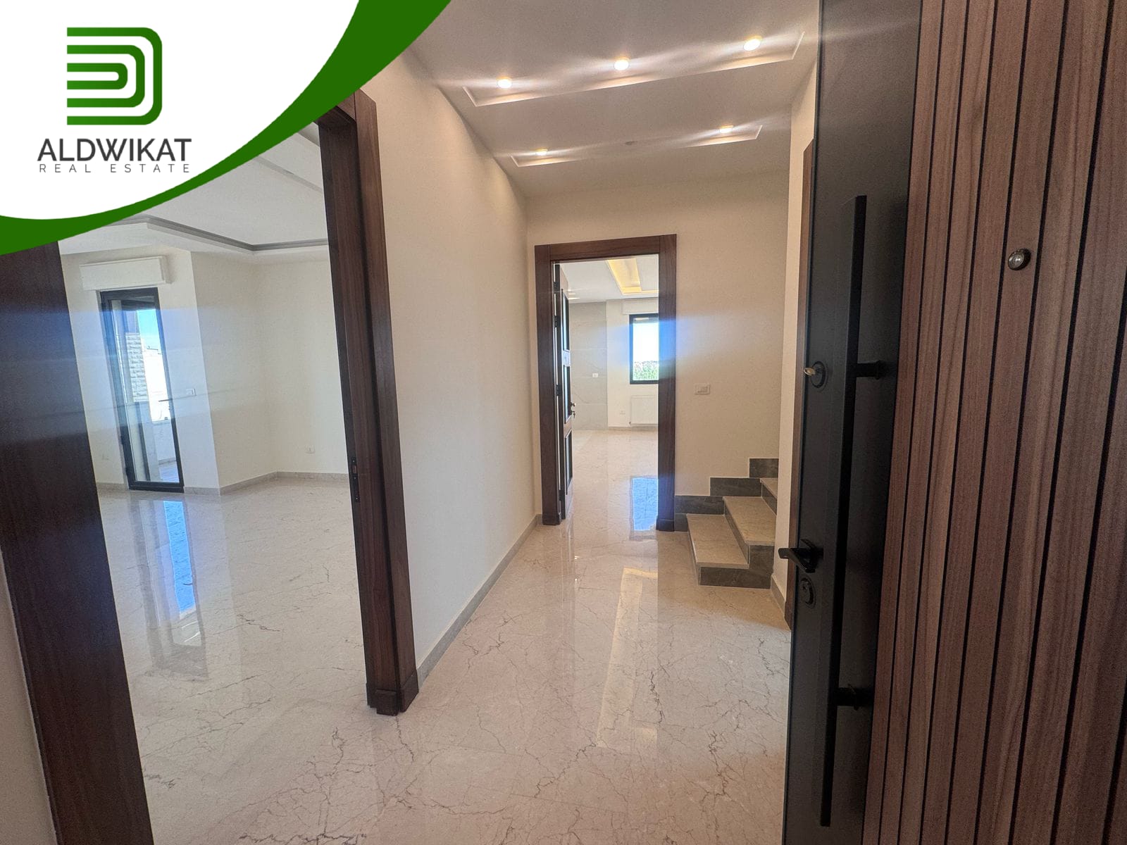 شقة طابق ثالث مع روف للبيع في رجم عميش مساحة 280م داخلي والترس 90م منطقة هادئة ومطلة